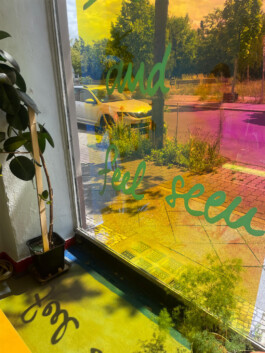 The texts on the walls include quotes, common sayings, and the artist’s own observations, all connected to the history of the diaspora.