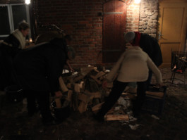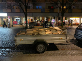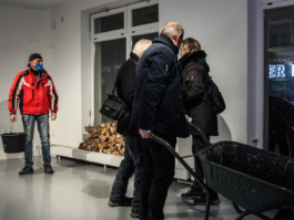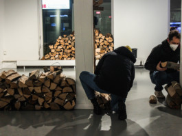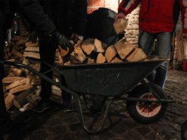 warm up / happening / firewood, fire, buckets, wheelbarrow / 2021