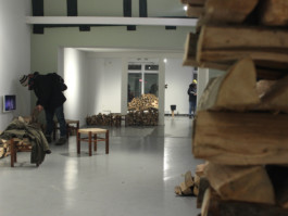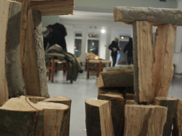 Wood became a central element in evoking the experience of home and belonging, while the gallery space functioned as a temporary winter storage for preserving this symbolic source of warmth.